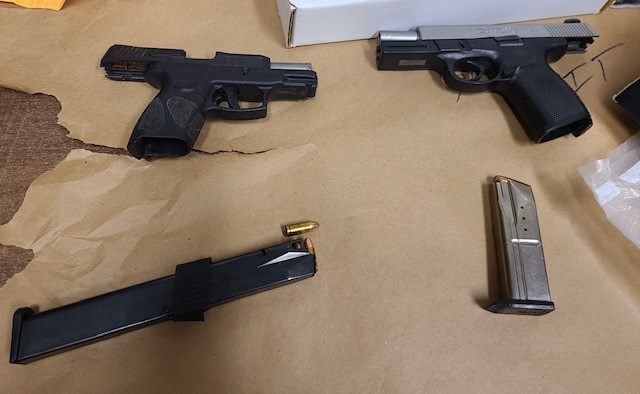 Troopers located two handguns, numerous items associated with drug dealing and distribution, United States Currency, and plastic bags containing suspected heroin.