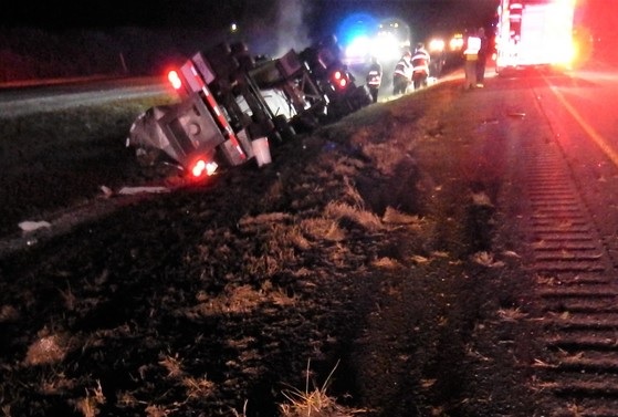 (Steuben County, IN)- At approximately 6:45pm this evening, the Indiana State Police responded to a single vehicle semi rollover crash on the Indiana Toll Road (I-80/90) near the 151 mile marker, Steuben County.