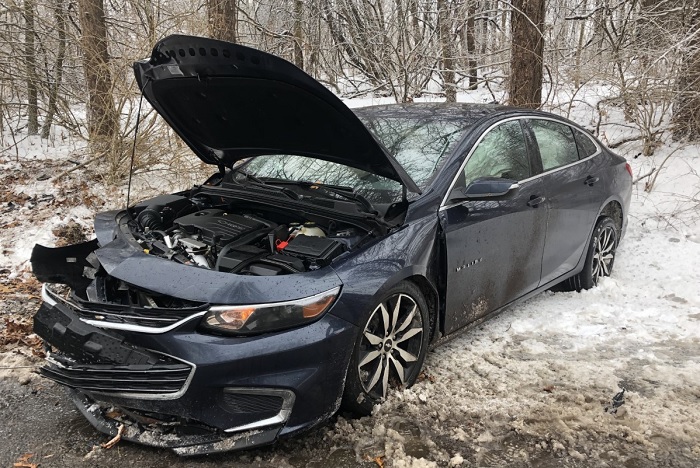 Investigation shows that Elkhart resident, Porsha Gordon (28) was traveling westbound on Redfield St. when her vehicle was struck by a red Ford Fusion. Gorden then lost control of vehicle and struck a tree on the south side of the road. The Ford Fusion continued eastbound on Redfield St. without stopping. Gorden refused medical treatment.