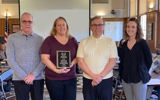 from left: 911 Advisory Committee Chairperson Jack Fisher, Telecommunicator of the Year Kristina Burks, Board of Commissioners Chairperson Mac Elliott, Berrien County Public Safety Communication Center Director Caitlin Sampsell