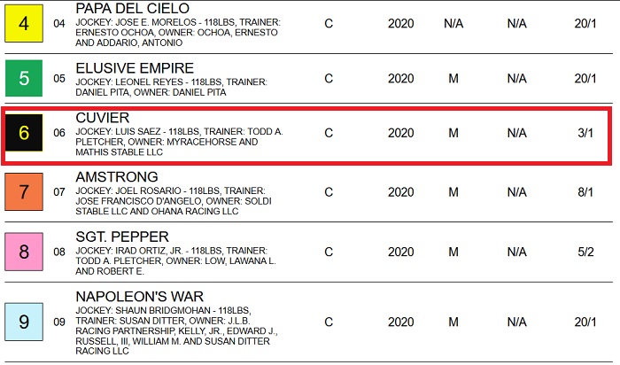Cuvier is a 3 year old colt. He was sired by Collected out of the Flower Alley mare Chasing The Moon. He is trained by Todd A. Pletcher. He looks to be a good one.