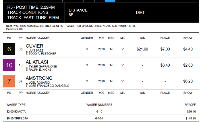 Pletcher’ trainees debuting on Saturday in this field includes Cuvier, a son of Pacific Classic (G1) winner and Breeders’ Cup Classic runner-up Collected. The chestnut colt clocked a quick half-mile from the Palm Beach Downs starting gate in 49.30 seconds last week. Keep in mind, Pletcher has gone 19-for-79 (24 percent) debuting 3-year-olds males over the Gulfstream dirt since 2018.