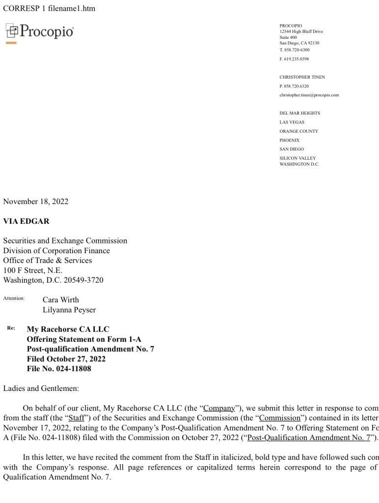 Two other ownership opportunities are also on hold with the SEC…Raven’s Lady 21 and Forever Rose because of the SEC rulings.