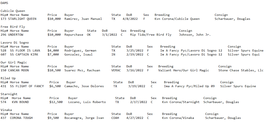(9-25-23) This past weekend the Heritage Place 45th Annual Quarter Horse Yearling Sale was held.