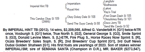 But for Appendix yearlings sale prices were disappointing…this year there were ‘Into Mischief‘ yearlings auctioned off with the top seller going for just $34,000. All of the yearlings came from artificial insemination and a lower stud fee then his thoroughbred fee of $250,000. In 2022 he broke (again) the all-time record in North America for progeny earnings in a single season.