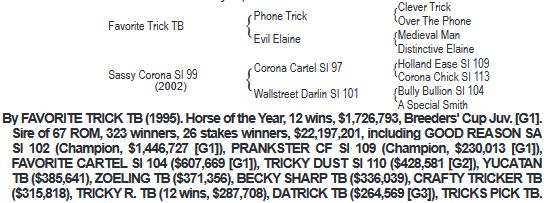 The top selling Appendix yearling went to Favorite Trick, who was one of the top thoroughbred racers in his day and 1997 Horse of the Year, who produced the top seller at $67,000 and the 2nd highest at $40,000. Thanks to Intracytoplasmic sperm injection (ICSI) he was able to continue produce foals…he died in a barn fire on June 6th, 2006.