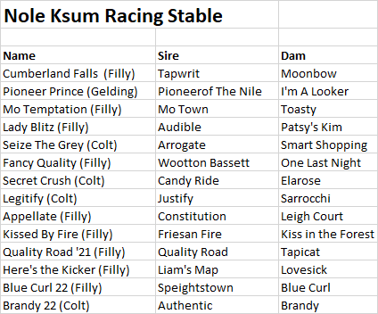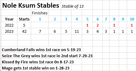 Of course the biggest highlight was Mage winning the Kentucky Derby, 2nd in the Florida Derby and 3rd in the Preakness. In 7 starts — 2 – 1st, 2-2nd and 1 -3rd.