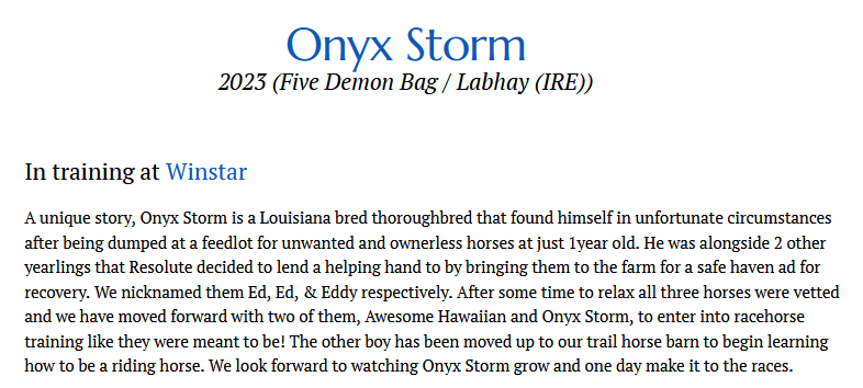 NOTE: The editor owns Nole Ksum Racing Stable and has shares in the Stewart Puca ’24 filly and in ‘Seize The Grey‘. Yes! we would buy shares in Onyx Stone and Awesome Hawaiian if they are offered in the future.