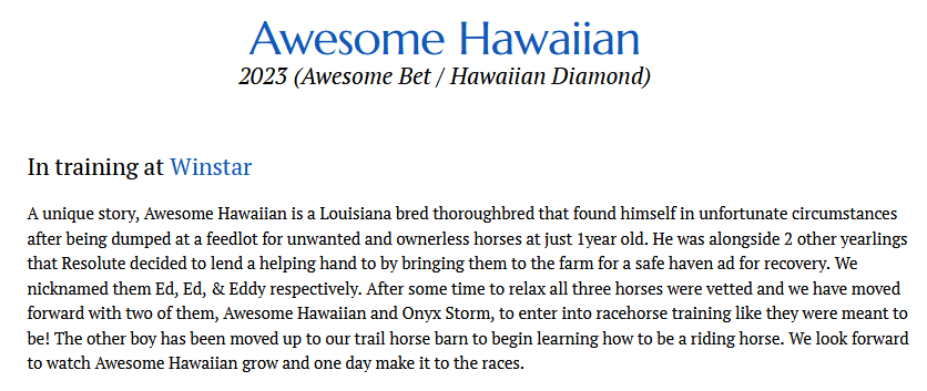 (5-31-25) Everybody loves a story that makes you feel good. This story is about two thoroughbred yearlings Onyx Stone and Awesome Hawaiian.