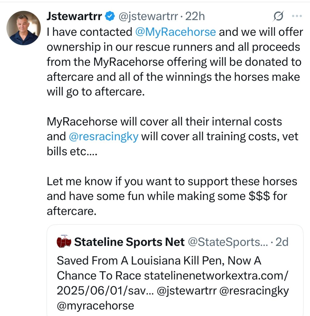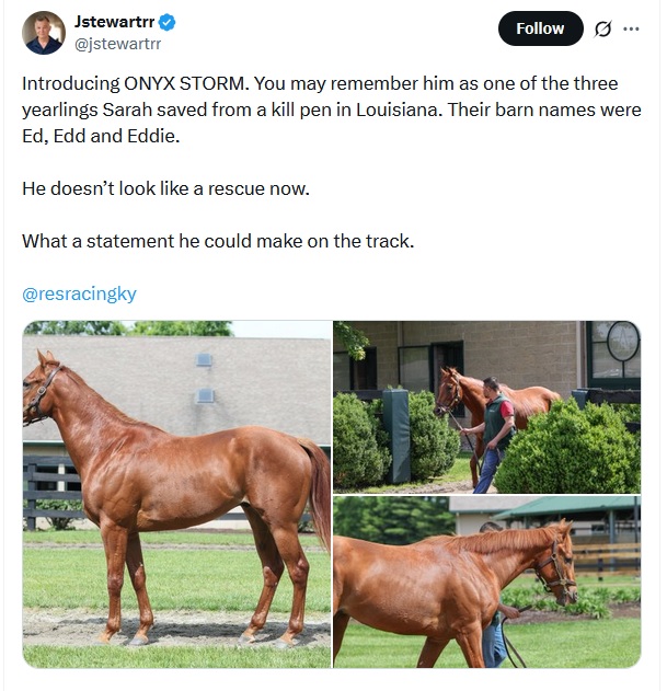 The two were acquired at a Louisiana Kill Pen, for both of them the good news was that the right horse people showed up and decided to give them a ‘fresh start‘. Purchasing thoroughbreds from a horse kill pen with the expectations of racing them at a high level is not something that happens on a regular basis. But that is exactly what is taking place. Today both are in training at Winstar.