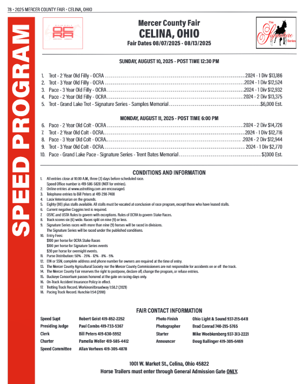 (8-11-25) Monday night OHHA harness racing at the 1/2 mile track at the Mercer County Fair in Celina, Ohio.