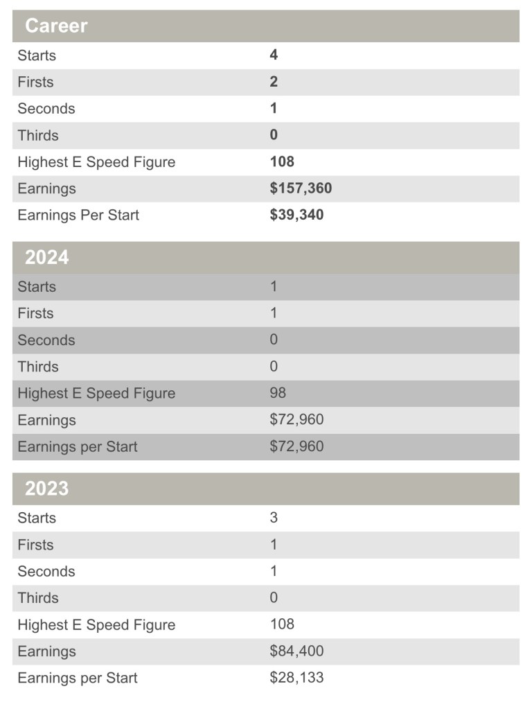 He last worked on 7/21/24 and retired with a left front sesamoid fracture.