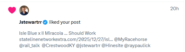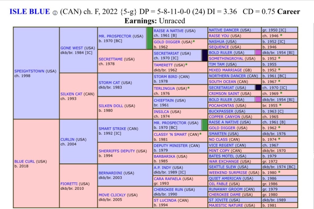 (12-27-25) With the news that MyRacehorse has decided to keep Isle Blue as a broodmare …the search goes on for a perfect match to produce her first foal.