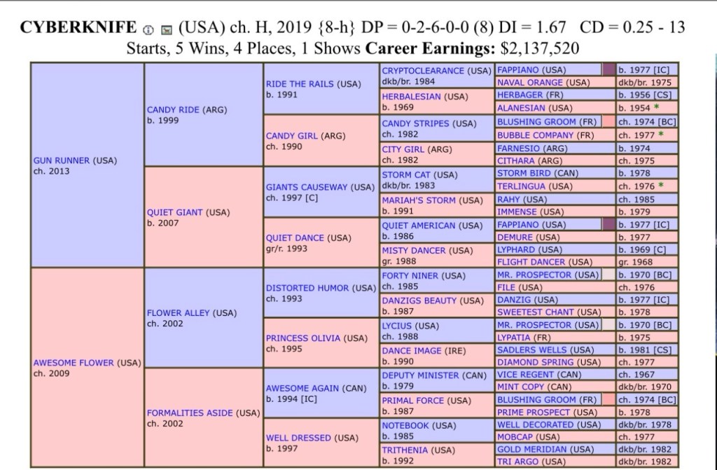 A $325K Cyberknife yearling filly out of a Speightstown half-sister to Isle Blue’s dam.