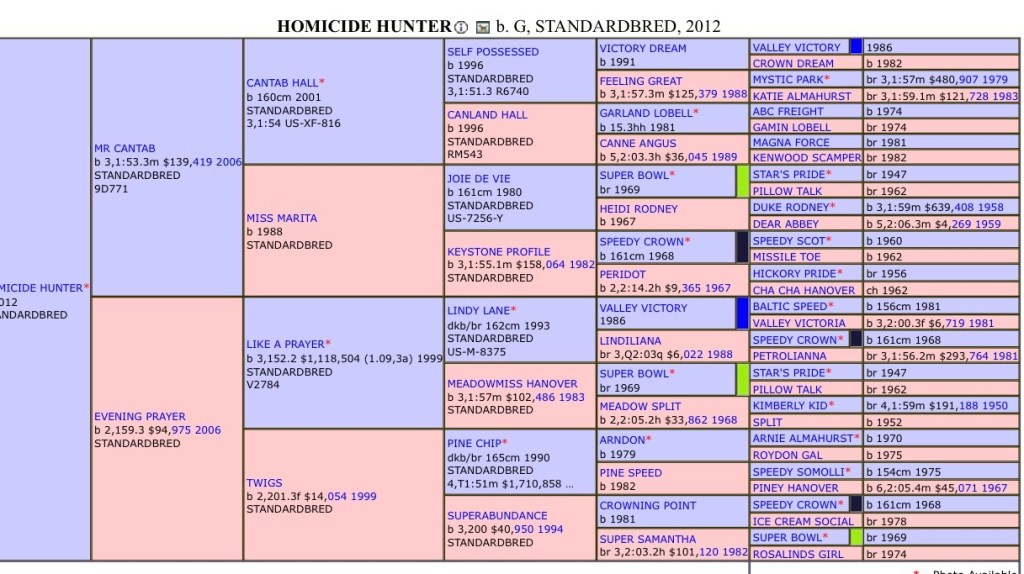 Homicide Hunter He won 41 races from 91 starts and made $1,761,577 in career earnings, with his most prestigious victory coming in the 2018 Breeders’ Crown Open Trot. In October 2018, Homicide Hunter set the world record for a trot mile in 1:48.4 when winning the $145,000 Allerage Farms Open Trot at The Red Mile in Lexington, Ky.