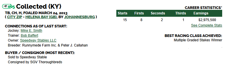 Collected’s First Crop Reflecting His Pedigree’s Sire Power