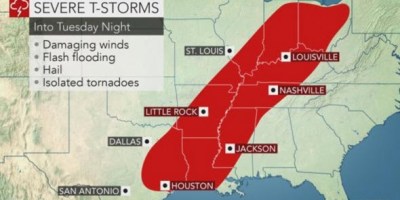 Largest severe weather outbreak of the season to strike southern, central US into Tuesday night
